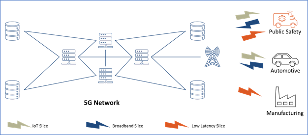 From an implementation perspective, MNOs could deploy a single “slice” (for example, an IoT-only slice) for multiple industry verticals (for example, Public Safety, Automotive, Manufacturing), and also bundle different slices (such as IoT, Broadband, Low Latency) to provide an end-to-end functionality to one specific vertical.